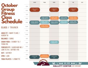 Feel free to drop in at any of our weekly classes this month and see what it’s all about. All classes, except the Aqua Fit class, will be in the back group fitness studio located off of our Arena. Our fantastic trainers have a passion for advising all skill levels and love seeing both new faces and the regulars. Our classes are a great way to try something new or meet somebody new this season. Everyone is welcome!