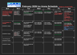 Broomball events are scheduled throughout the season based on ice availability. Clean boots are required.